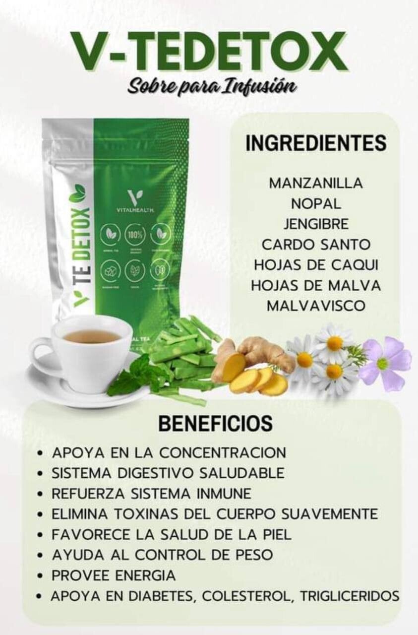 Tea Detox es una potente mezcla de hierbas de acción suave, elaborada para favorecer los procesos naturales de limpieza del organismo sin efectos secundarios ni molestias. Con una combinación sinérgica de hoja de sen, cardo mariano, penca de cactus, hoja de caqui, cardo bendito, manzanilla, hoja de malva, hoja de malvavisco y jengibre, esta fórmula favorece la digestión, ayuda al funcionamiento del hígado, reduce la hinchazón ocasional y mantiene el tránsito intestinal, de forma natural.